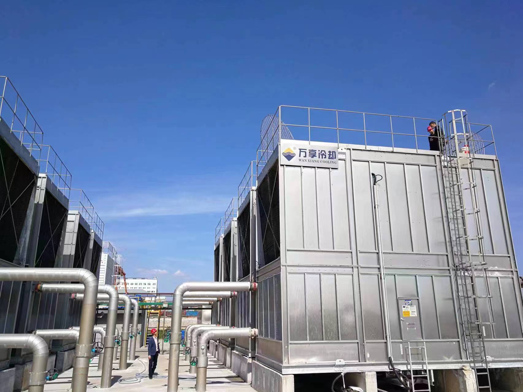 在石化行业,冷却塔设备应用于塔器、换热器、反应器等主体装置和压缩机组,通常循环水量大、水质要求高、水温要求严格,经CTI认证的闭式冷却塔设备能更好满足该工艺需求。万享大型闭塔产品被用于杰瑞集团LNG冷剂压缩机组,稳定高效的换热能力降低了整体运行功耗。